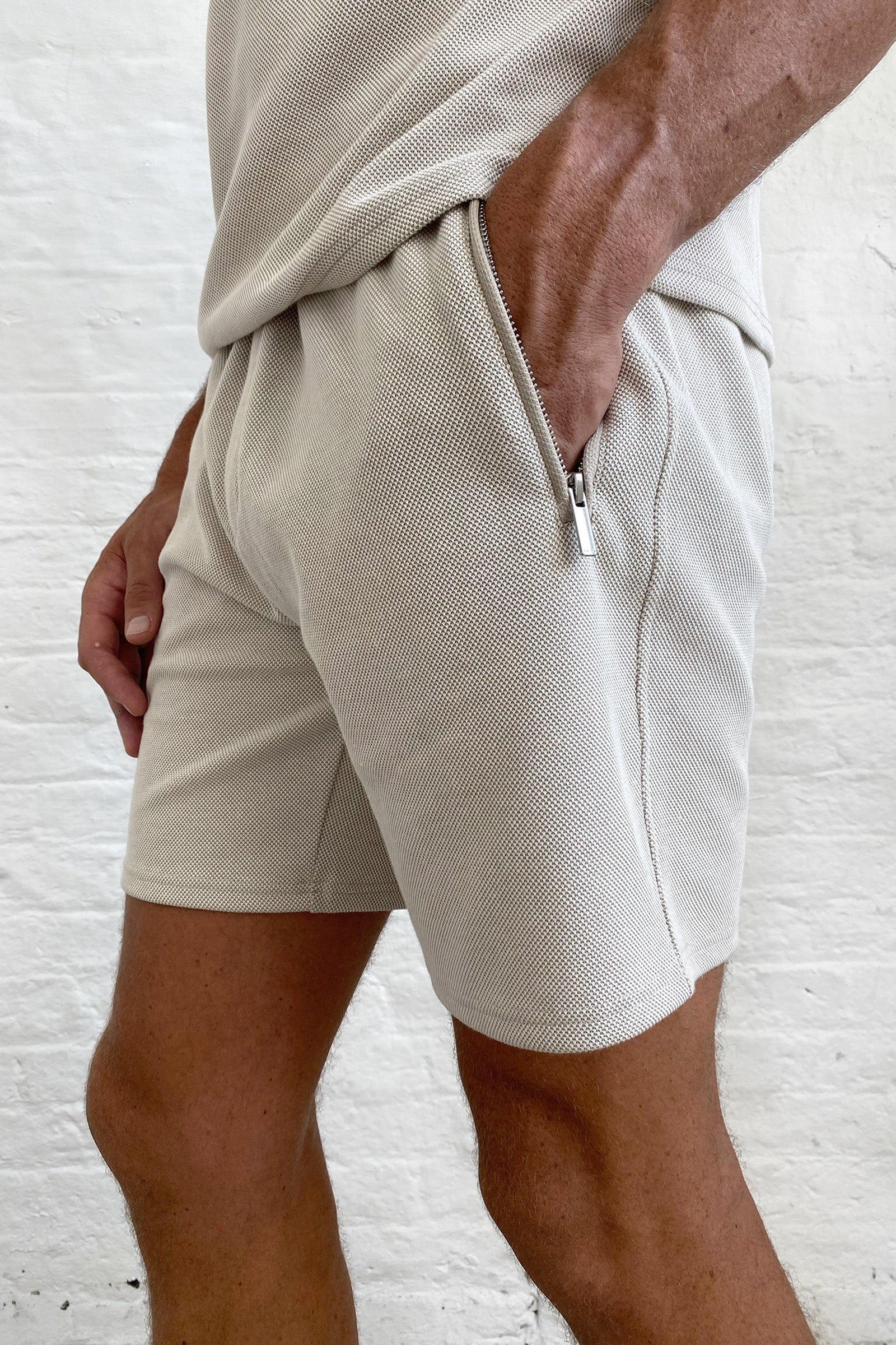 RELAXED TEXTURED SHORT - BEIGE MARL