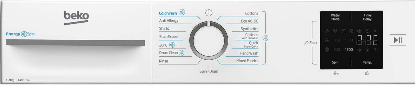 Bethtko BM3WT3941W 9kg Washing Machine With 1400 Spin - White - A Rated