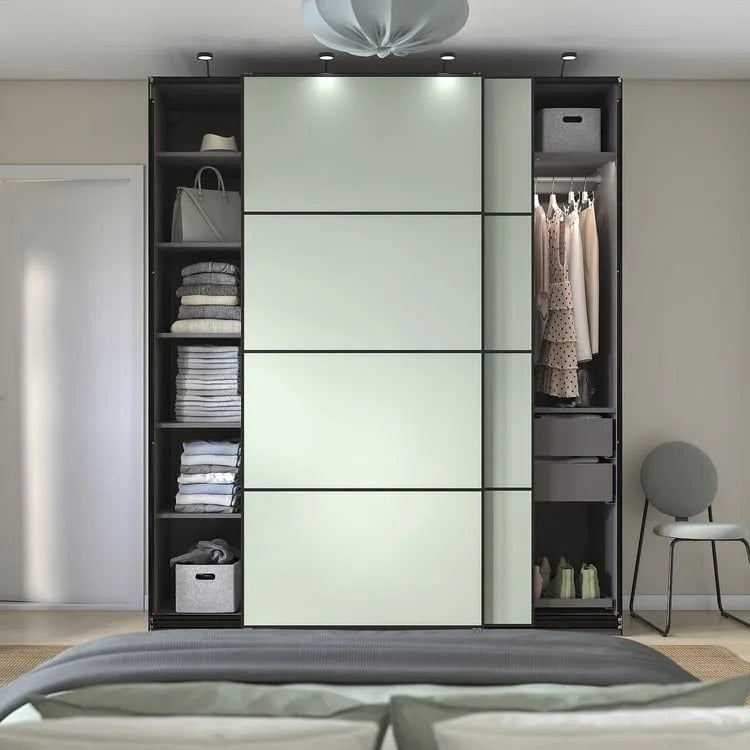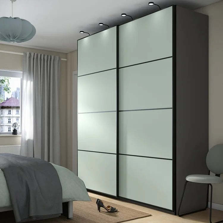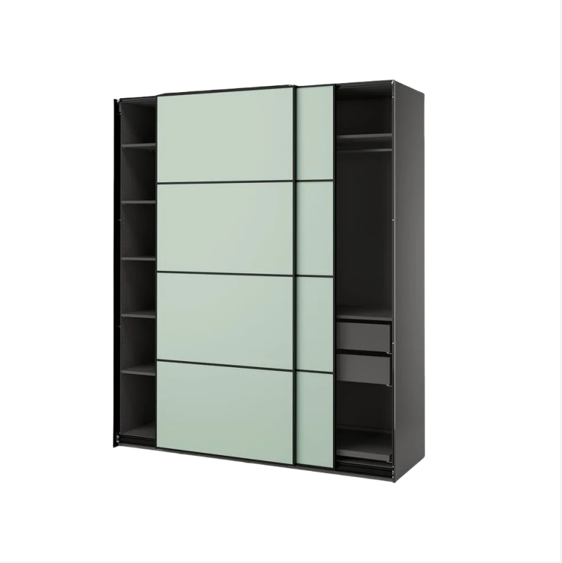 Wardrobe with sliding doors, dark gray/double sided light green, 78 3/4x26x93 1/8 "